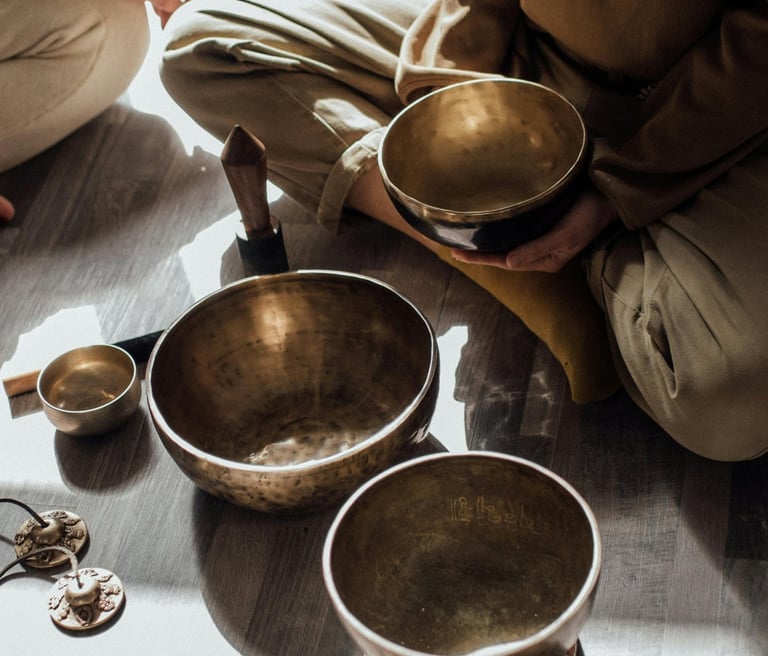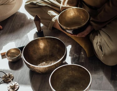 Sound and vibrational tools used to refresh the energy including singing bowls,tingsha bell to clear old energy and support a fresh and positive flow